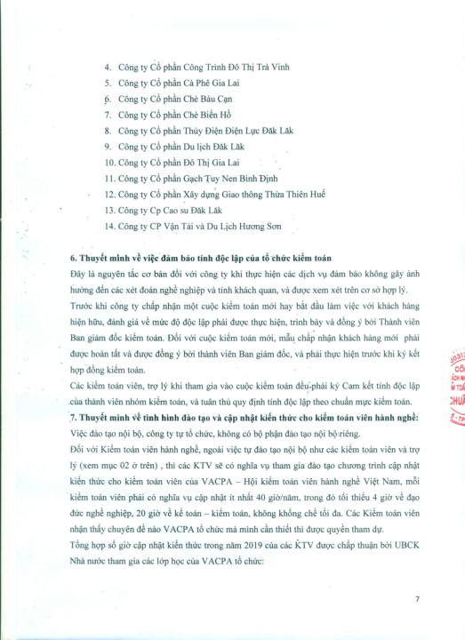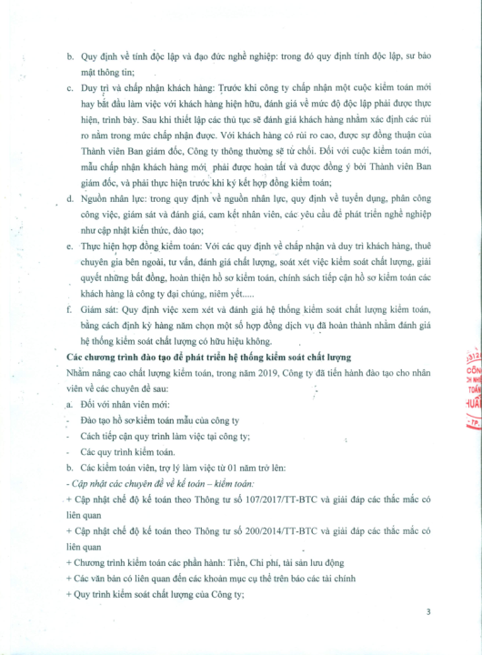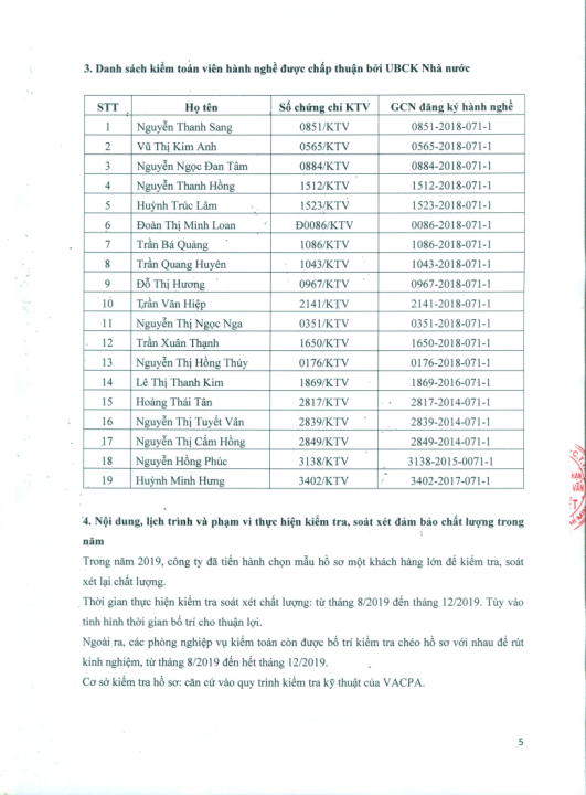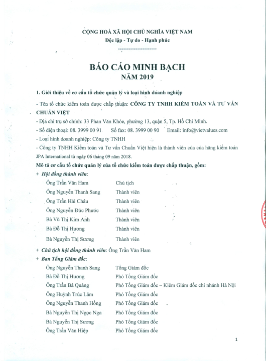 Báo cáo Minh bạch năm 2019 ngày 25/3/2020