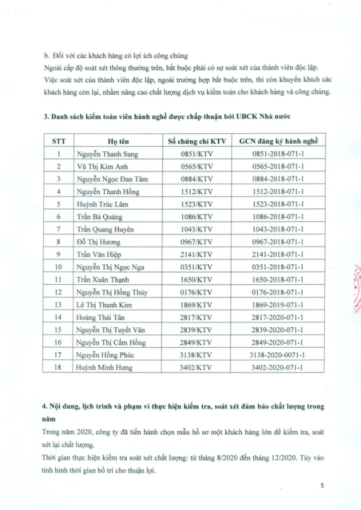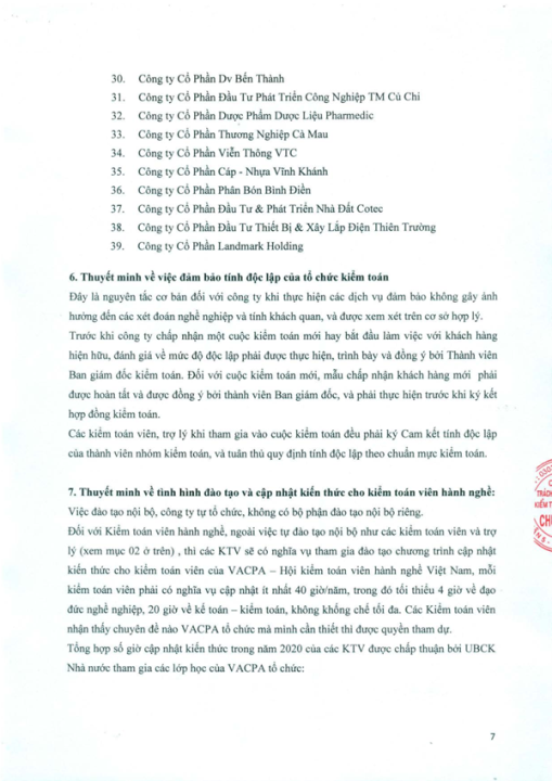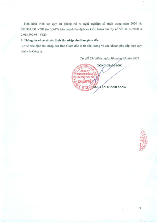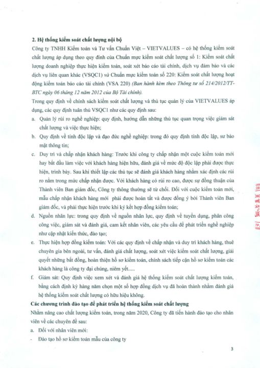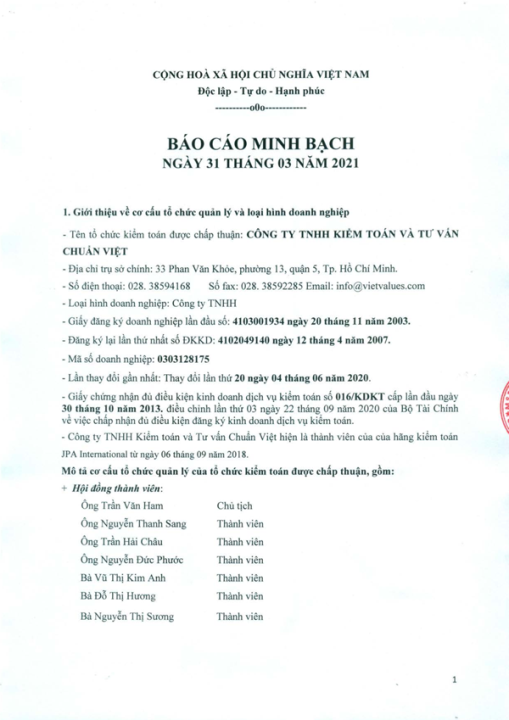 Báo cáo Minh bạch năm 2020 ngày 31/3/2021