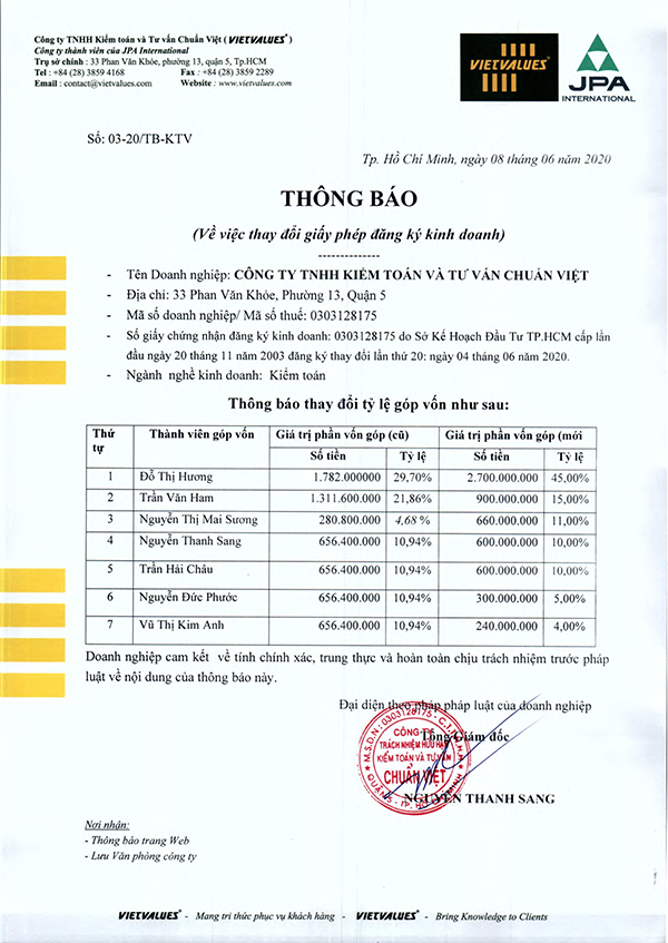 Thông báo giảm Kiểm toán viên 08/06/2020